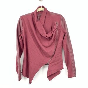 Blank NYC Women Size Small Jacket Motto Side Zip Drape Red Faux Leather Cotton