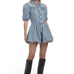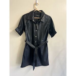 Keywords: Blank NYC, faux leather, shirt dress, black dress, party dress, cocktail dress, short dress, belted waist, collared neckline, snap closure, women's fashion, medium size, short sleeve, new with tags.