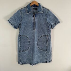 Blank NYC Women's Black Faux Leather Shirt Dress Size M Short Sleeve
