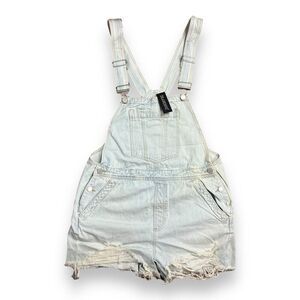 Blank NYC Women's L Blue Light Wash Shortalls Denim Overalls Raw Distress Hem
