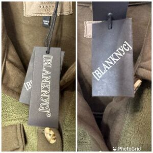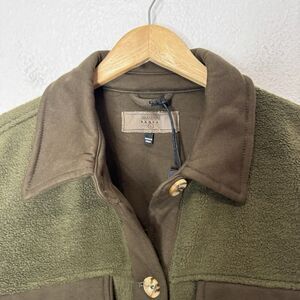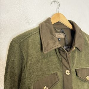 Blank NYC Womens Large Fleece Shacket Jacket Olive Green Brown New Pockets Fall