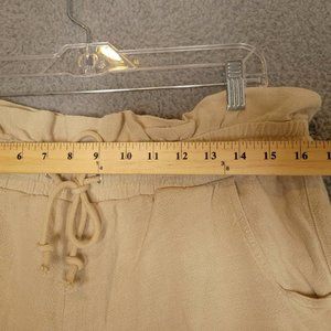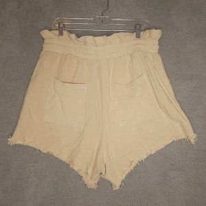Blank NYC Womens Paperbag Shorts Beige Viscose Blend Drawstring Frayed XL New