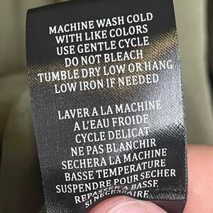 Blank NYC Women’s Size Large Two-Tone Green Linen Lyocell Drape Front Jacket. The darker green is a blend of linen and rayon. The lighter green is 100% Lyocell. The sleeves are lined. There’s a button on the right interior and one on the left exterior to fully close the jacket. It does have the option to have functional pockets, but the previous owner never opened them up. You’ll just have to carefully remove the stitching that keeps them closed, if you want to use the pockets.