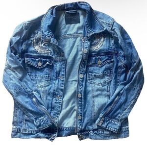 Blank NYC Womens Size Medium Out of Sight Out of Mind Embroidered Denim Jacket