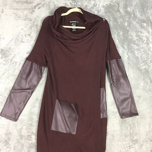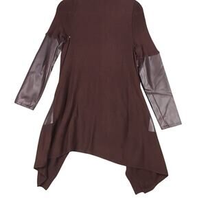 Blank NYC Women’s Size S Maroon Faux Leather Panel Drape Cardigan Sweater
