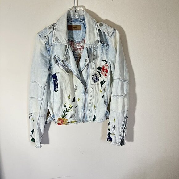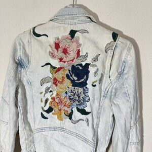 Blank NYC Women's Size Small Embroidered Studded Denim Moto Jacket Acid Wash