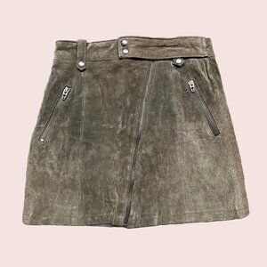 Blank NYC Women's Skirt Size 26 Olive 100% Suede Leather High Waist Mini Moto