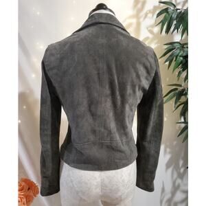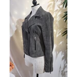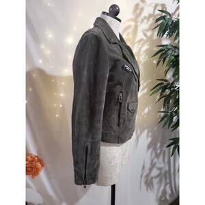 Blank NYC Womens Suede Leather Moto Zip Jacket Size S Green Gray Biker Baddie