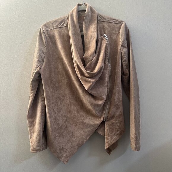 Blank NYC Women's Sunny Days Moto Jacket Asymmetrical Neutral Beige Size Medium