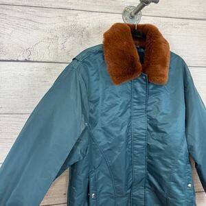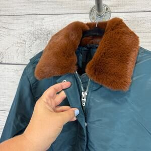 Blank NYC Women's Teal Nylon Refreshed Faux Fur Collar Jacket Size Large