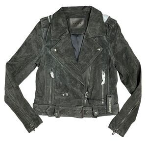 Blank NYC Women’s XS Grey Suede Leather Button Zip Moto Jacket NWT Spring