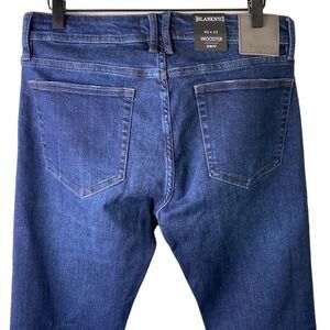 Blank NYC Wooster slim fit straight leg distressed jeans dark wash stretch zip