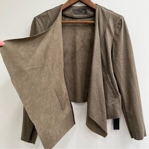 Blank NYC fast play open front draped Moto jacket olive green/brown croc faux leather size large in excellent condition,no flaws. Raw cut edges. Very comfortable. New with partial tags. Please refer to photos for measurements,details and product description