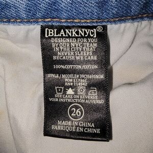 Excellent pre-owned condition. Women's Blank NYC high rise distressed/ripped denim jean cut off shorts size 26.