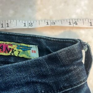 Women’s jeans. They are slightly distressed on the backside of both legs see pictures. The waist is 27 inches. The length is 39.5 inches. The midrise is 7.5 inches and the inseam is 30 inches