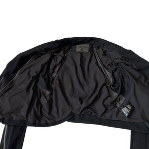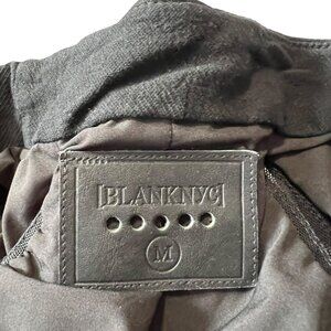 Blank NYC moto style jacket, black knit cotton with sheer mesh, cropped length, double asymmetrical zipper, fitted medium, pit to pit: 17.5", length: 19", preowned and shows general wear, no major flaws - see photos