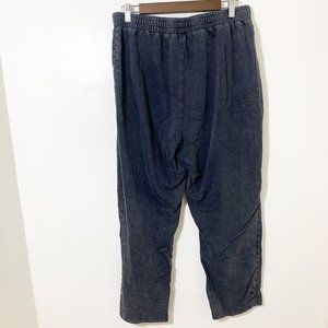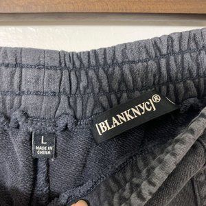Blank NYC straight leg high waisted sweatpants in faded black color, women's size large. Relaxed fit. Almost looks like jeans. One faint darker spot on front side.