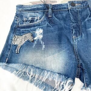 Blank NYC zebra ripped Jean shorts blue distressed denim size 30 NWT new