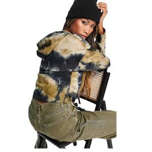 BlankNYC Sweater Women’s XS Brown Crop Tie Dye Hoodie Gotta Be You Drawstring Grunge Streetwear Harajuku Lounge Everyday InkBlot