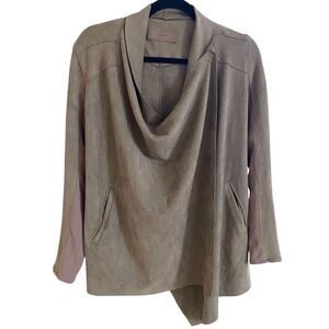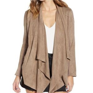 Blank NYC Taupe Faux Leather Suede Open Waterfall Drape Two Way Jacket Sz XS
