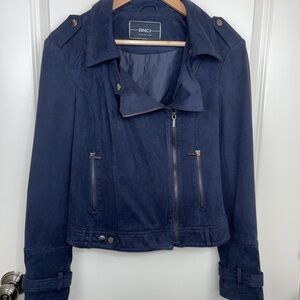BNCI Blank Noir Faux Suede Navy Moto Jacket S