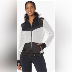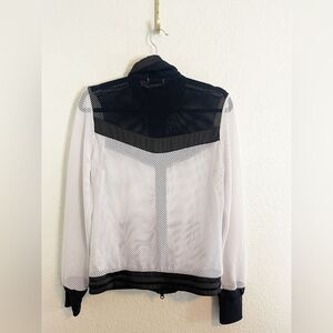 If you’re looking for a more edgy workout jacket look no further. I love mesh, what can I say, I’m a child of the 80’s! I have the matching skirt too! This jacket has thumb holes. This listing is for the jacket only but if interested in the set let me know. Great by the pool or a resort vacation. Ptp 19, length 24”. Like new. Questions? Leave a comment below! Could fit a small or medium.