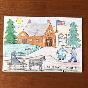 Blank Note Cards Hand Sketched PA Folk Art Country Saturday Night Peace Cosmos