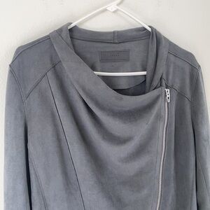 Black Nyc Drape Front Jacket. Faux Suede with a asymmetrical zipper super soft!