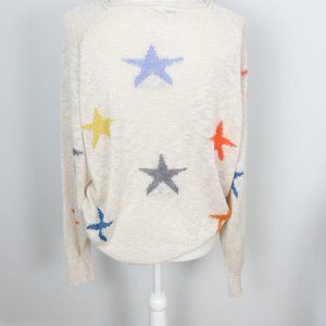 Blank Paige Tan Lightweight Sweater with Colorful Stars Medium