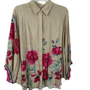 BlankLondon Women Long Sleeve Boxy Relaxed Blouse Top Brown Preppy Boho Size XL