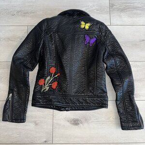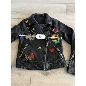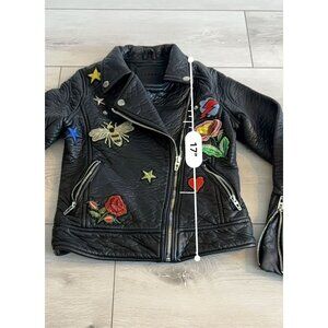 BlankNYC Black Faux Leather Embroidered Moto Jacket Girl's Small S