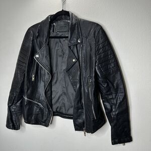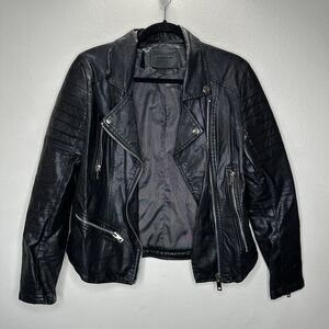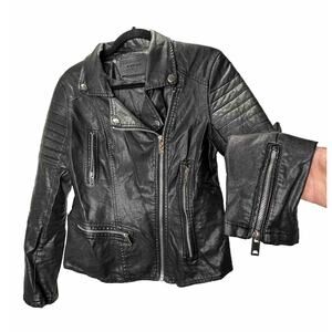 BlankNYC Black Faux Leather Zip Moto Jacket Quilted Shoulders & Back Design SM