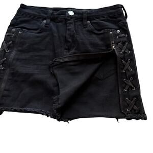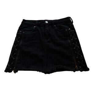 BLANKNYC Black Lace-Up Denim Mini Skirt Size 24 Moto Edgy Zipper Raw Hem Y2K Grunge