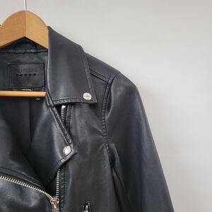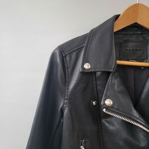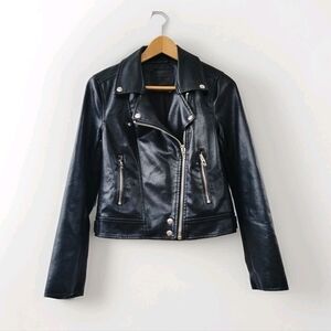 BlankNYC Black Moto Jacket Size XS Faux Leather Minimalist Chic Silver Zippers