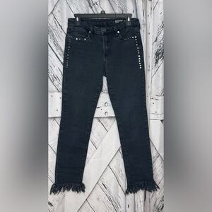 BlankNYC Black Denim Floral Embroidered Studded Skinny Jeans 29