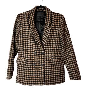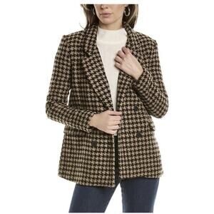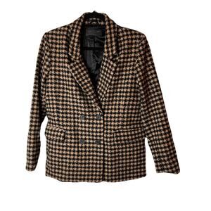 BlankNYC Book Club Houndstooth Double-Breasted Blazer Tan Black Size Medium