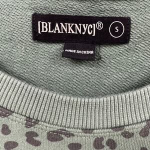 BlankNYC Cheetah Print Cropped Raw Hem Sweatshirt Green Womens Small