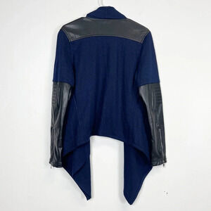 BlankNYC Coat Womens Small Navy Blue Black Faux Leather Wool Jacket Draped Front