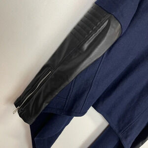 BlankNYC Coat Womens Small Navy Blue Black Faux Leather Wool Jacket