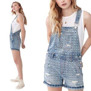 NWT Blank NYC denim distressed punch line overall romper. Pockets. Adjustable straps. NO TRADES.