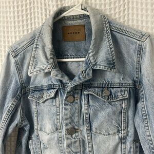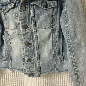 BlankNYC Distressed Cropped Denim Jean Jacket in Light Blue Large