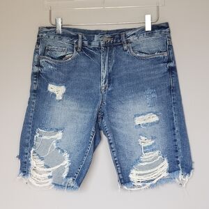 BlankNYC Distressed Denim Bermuda Boy Short High Rise Blue Women Size 29
