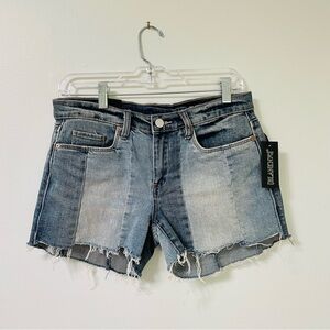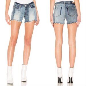 BlankNYC Essex Jean Shorts 27 NWT Midtown Madness Denim Paneled Patchwork Frayed