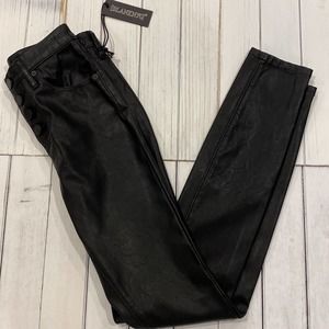 NWT BlankNYC Exposed Button Fly Faux Leather Skinny Pants in Daddy Soda (Black). Size 24