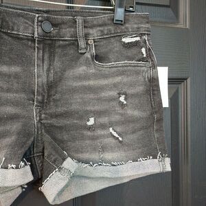 Dashed with destruction and turned to the perfect inky black wash, these cute cutoffs are cut from nonstretch denim and are ready for sunny days and hot nights.