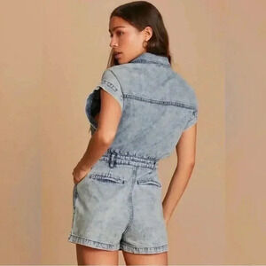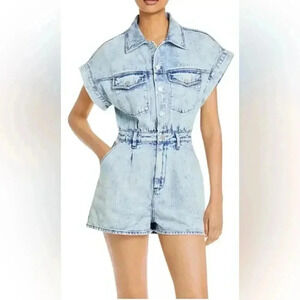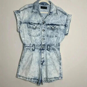 Blank NYC Head Backstage Soft Denim Romper in Light Acid Wash - Size M