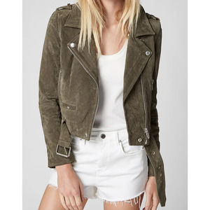 BlankNYC Herb Green Moto Suede Leather Jacket XS