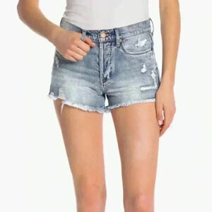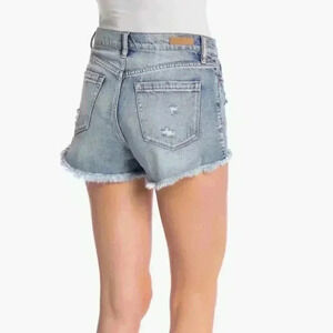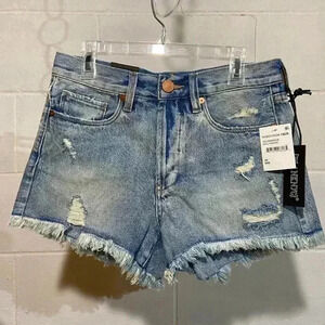 BlankNYC High Rise Distressed Denim Shorts in HOLLYWEIRD Fringe Button Fly NWT