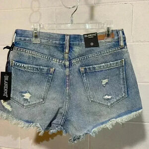 BlankNYC High Rise Distressed Denim Shorts in HOLLYWEIRD Fringe Button Fly NWT Casual Streetwear