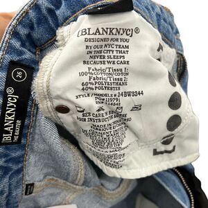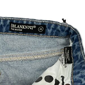 Blank NYC Jeans Womens 26 Blue Baxter Wide Leg Rib Cage Moto Faux Leather Biker